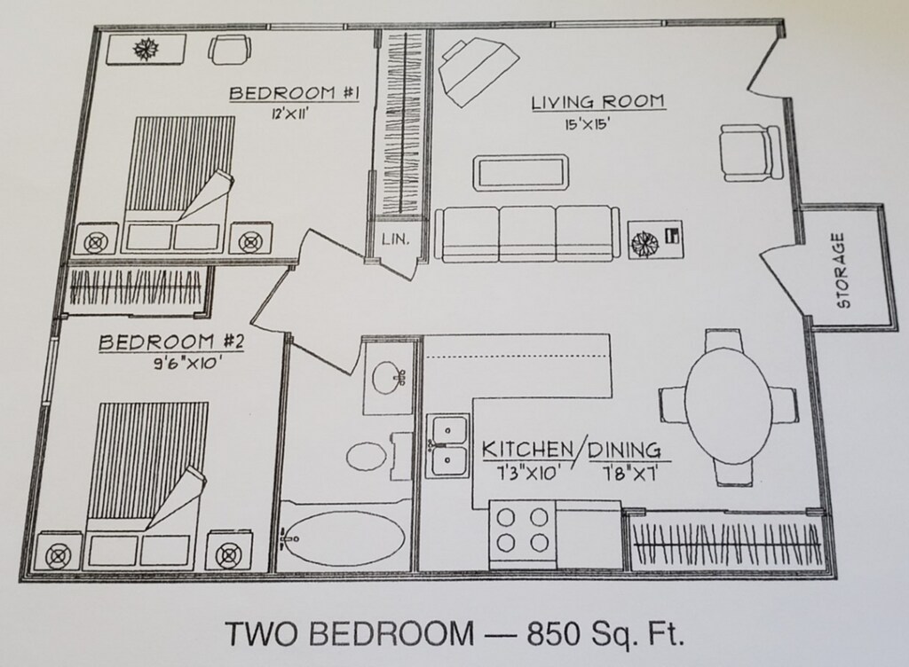 2 Bed 1 Bath - Balcony - Plano 11 ![]()