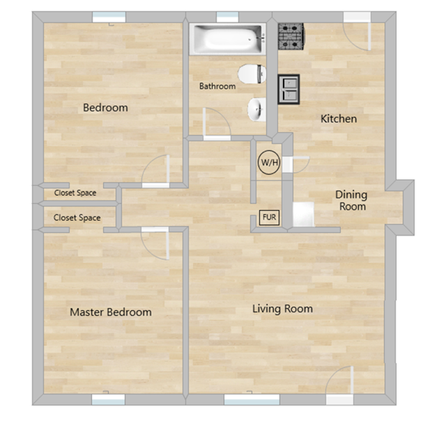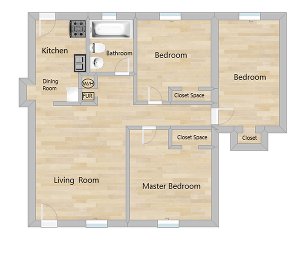 Modelo de apartamento: Maple3 Dormitorios, 1 Baño, 900 sq ftNo Disponible![]()