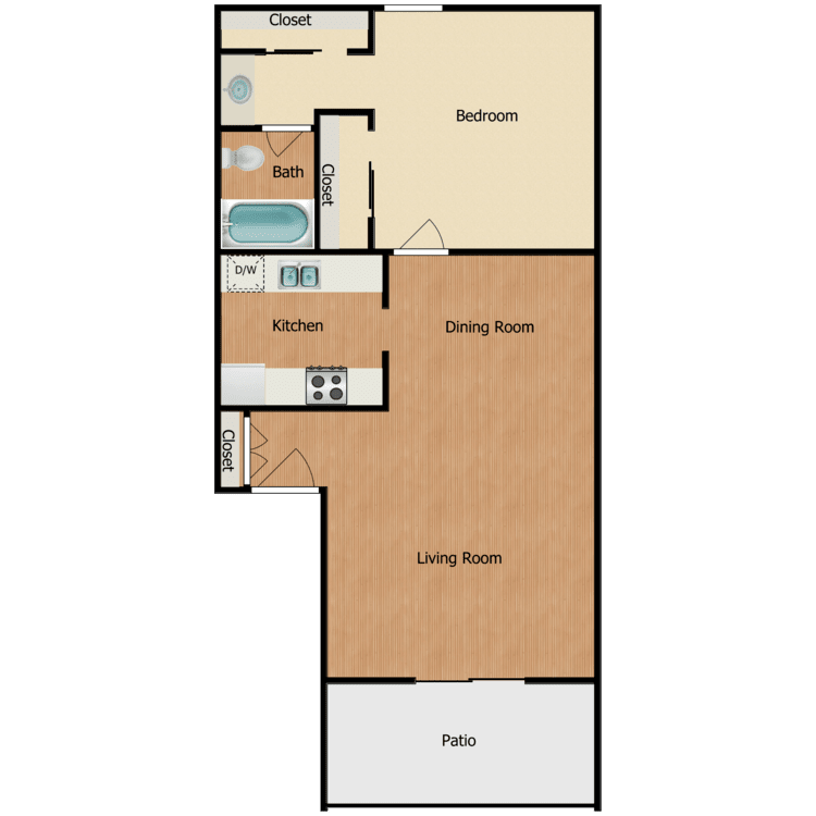 Modelo de apartamento: 1 Bed 1 Bath1 Dormitorio, 1 Baño, 628 sq ftDisponible Ahora![]()
