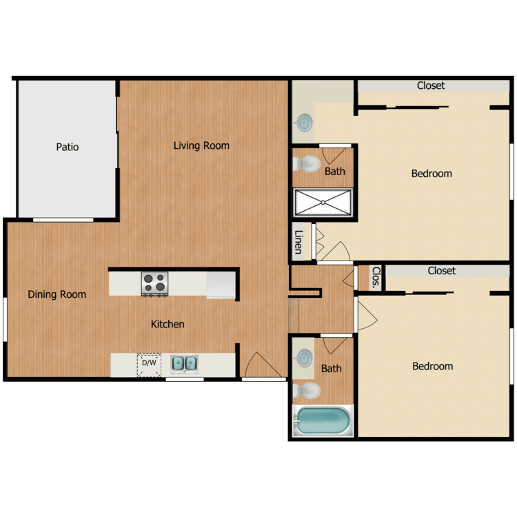 Modelo de apartamento: 2 Bed 2 Bath2 Dormitorios, 2 Baños, 1005 sq ftDisponible Ahora![]()
