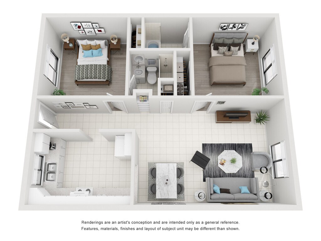 2 Dormitorios, 2 Baños, 850-877 pies²Detalles de Diponibilidad