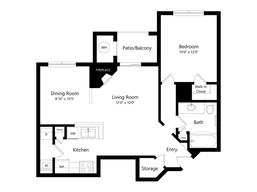 Augusta - Plano 1 Los planos son representaciones artísticas. Todas las dimensiones son aproximadas. El producto y las especificaciones reales pueden variar en tamaño o detalle. No todas las características están disponibles en cada vivienda en alquiler. Por favor, consulta con un representante para obtener más detalles.