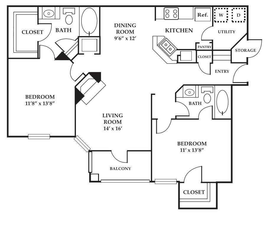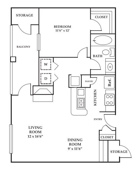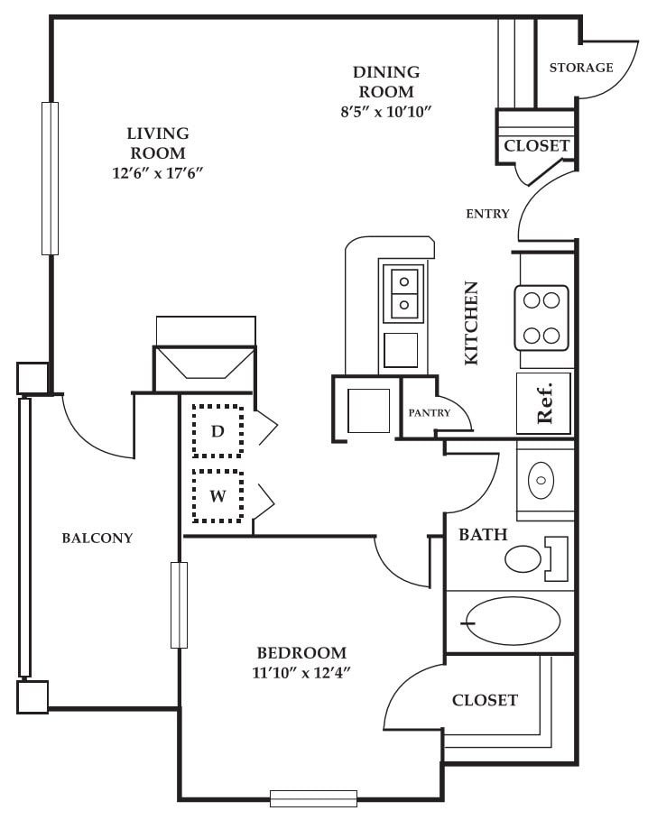 1 Dormitorio, 1 Baño, 719 pies²Disponible AhoraGalería del Modelo