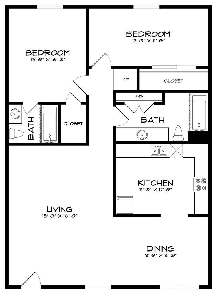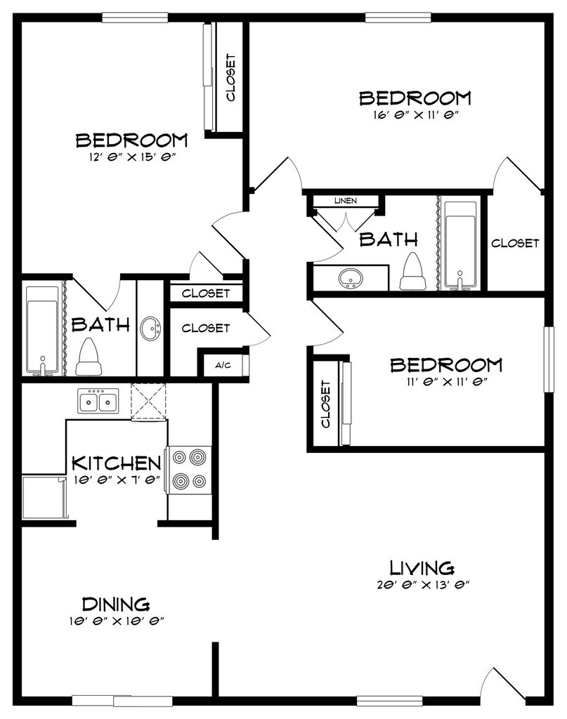 3 Dormitorios, 2 Baños, 1200 pies²Galería del Modelo