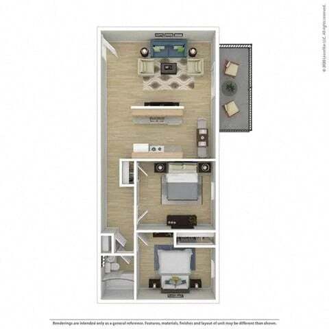 2 Dormitorios, 1 Baño, 728 pies²Disponible AhoraGalería del Modelo