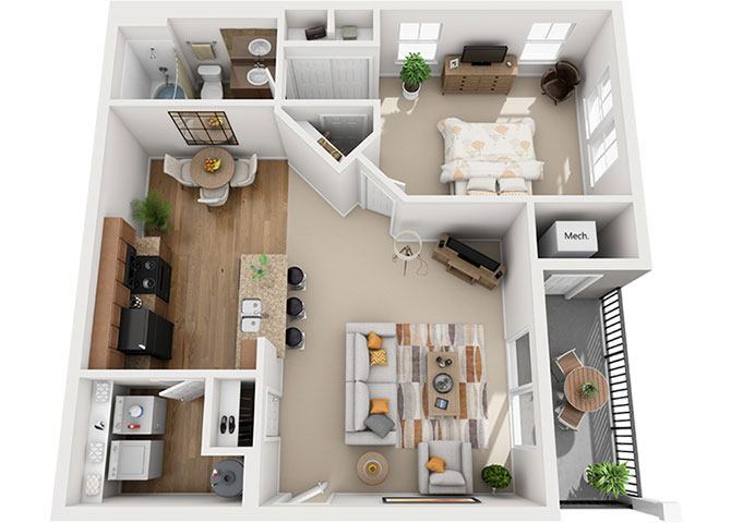 1 Dormitorio, 1 Baño, 816 pies²Disponible AhoraGalería del Modelo
