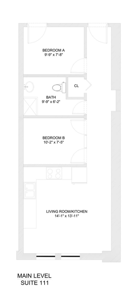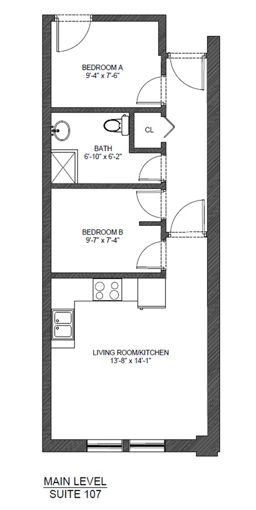 Unidad: 107 - Imagen 3 Unidad de apartamento: 111Modelo de apartamento: 2BR/1.0BA$1,7952 Dormitorios, 1 Baño, 510 sq ftDisponible August 9, 2026![]()