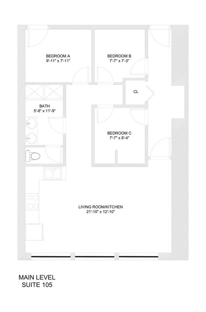 Unidad: 107 BTB - B - Imagen 2 Unidad de apartamento: 107Modelo de apartamento: 2BR/1.0BA$1,8452 Dormitorios, 1 Baño, 482 sq ftDisponible August 9, 2026![]()