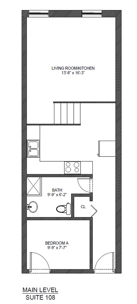 Unidad de apartamento: 107 BTB - BModelo de apartamento: 2BR/1.0BA$8952 Dormitorios, 1 Baño, 600 sq ftDisponible Ahora![]()