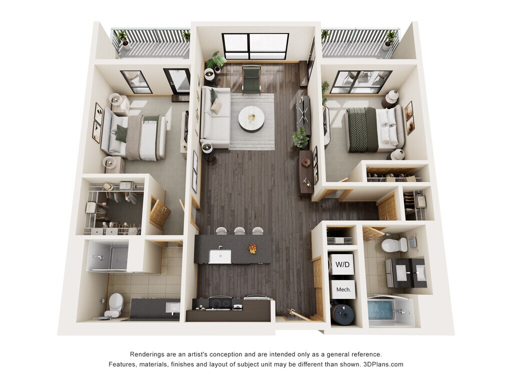 1 Dormitorio, 1 Baño, 842 pies²Disponible AhoraGalería del Modelo