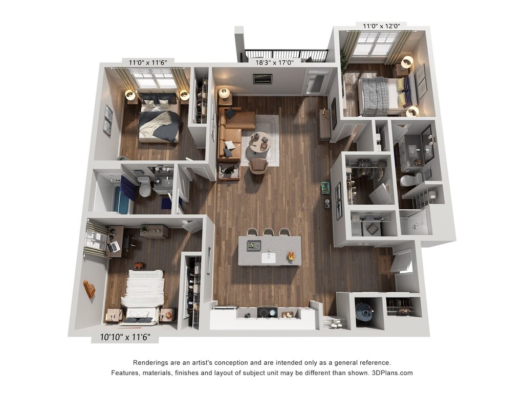 Modelo de apartamento: BisonDesde $1,0731 Dormitorio, 1 Baño, 755 sq ftDisponible Ahora![]()