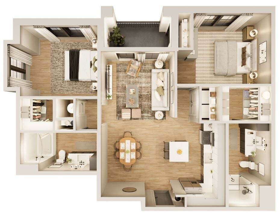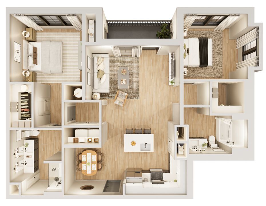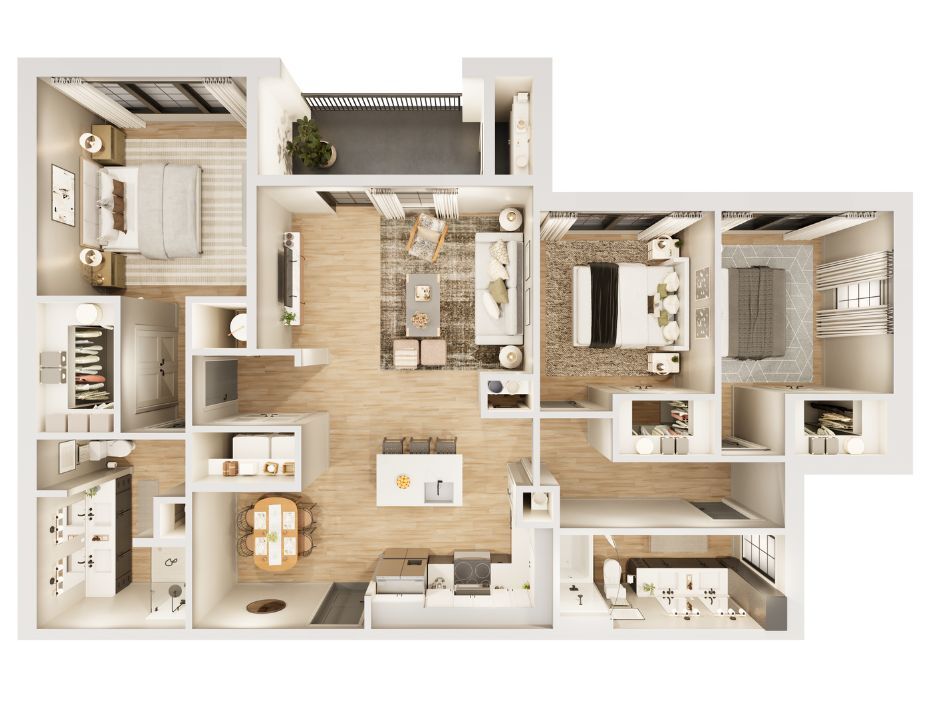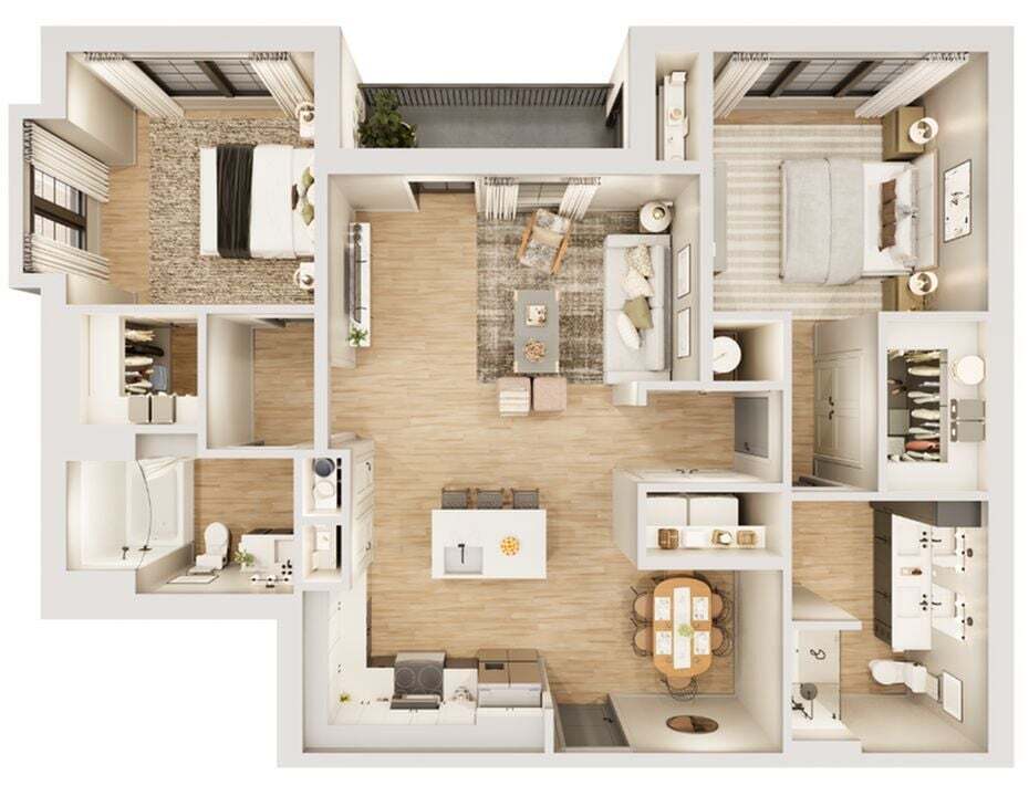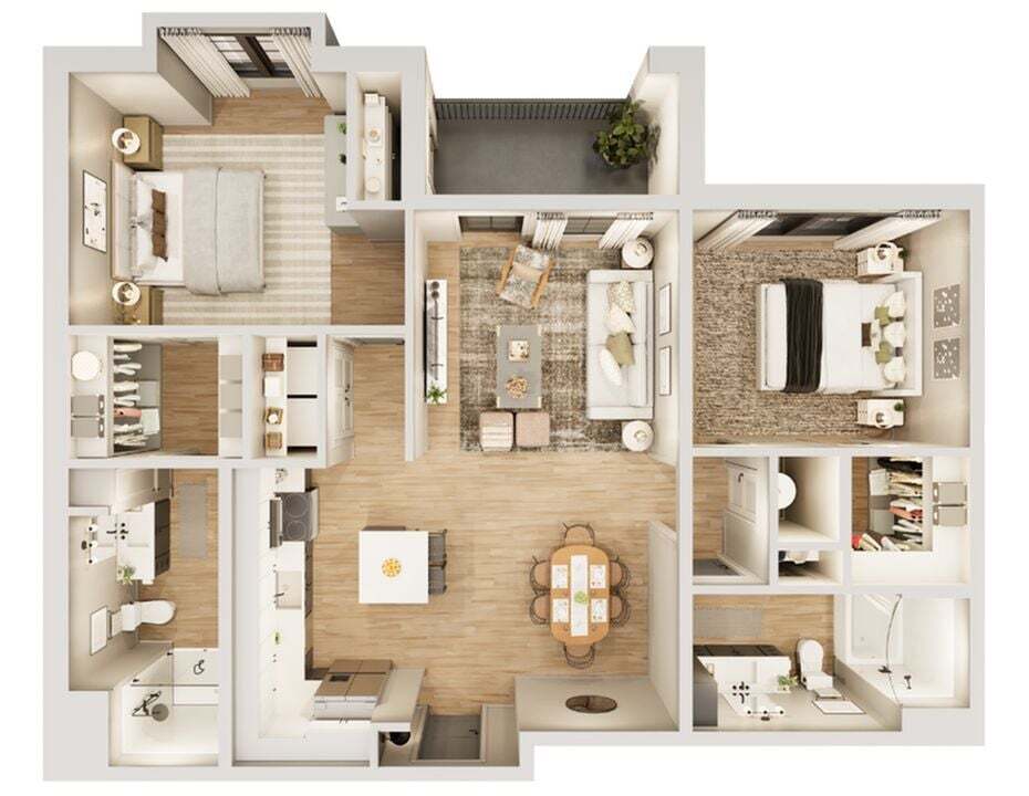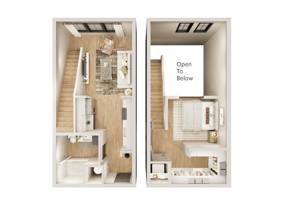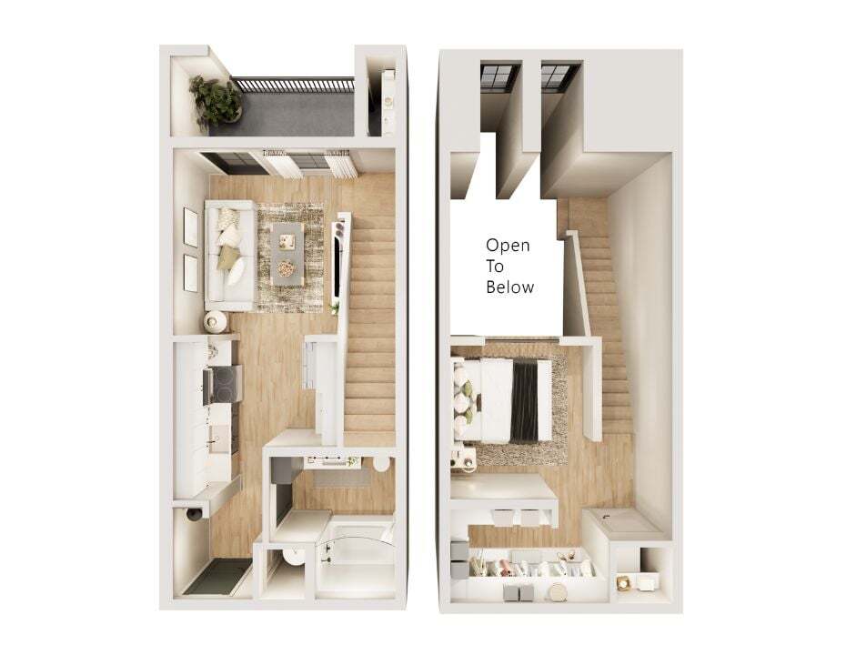 1 Dormitorio, 1 Baño, 729 pies²Disponible AhoraGalería del Modelo