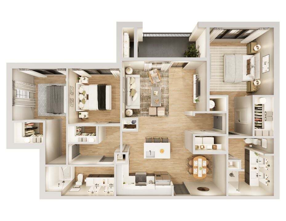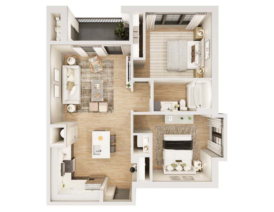 Modelo de apartamento: A1cDesde $1,4871 Dormitorio, 1 Baño, 678 sq ftDisponible Ahora![]()