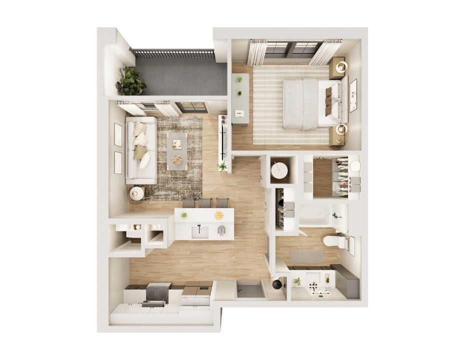 1 Dormitorio, 1 Baño, 678 pies²Disponible AhoraGalería del Modelo