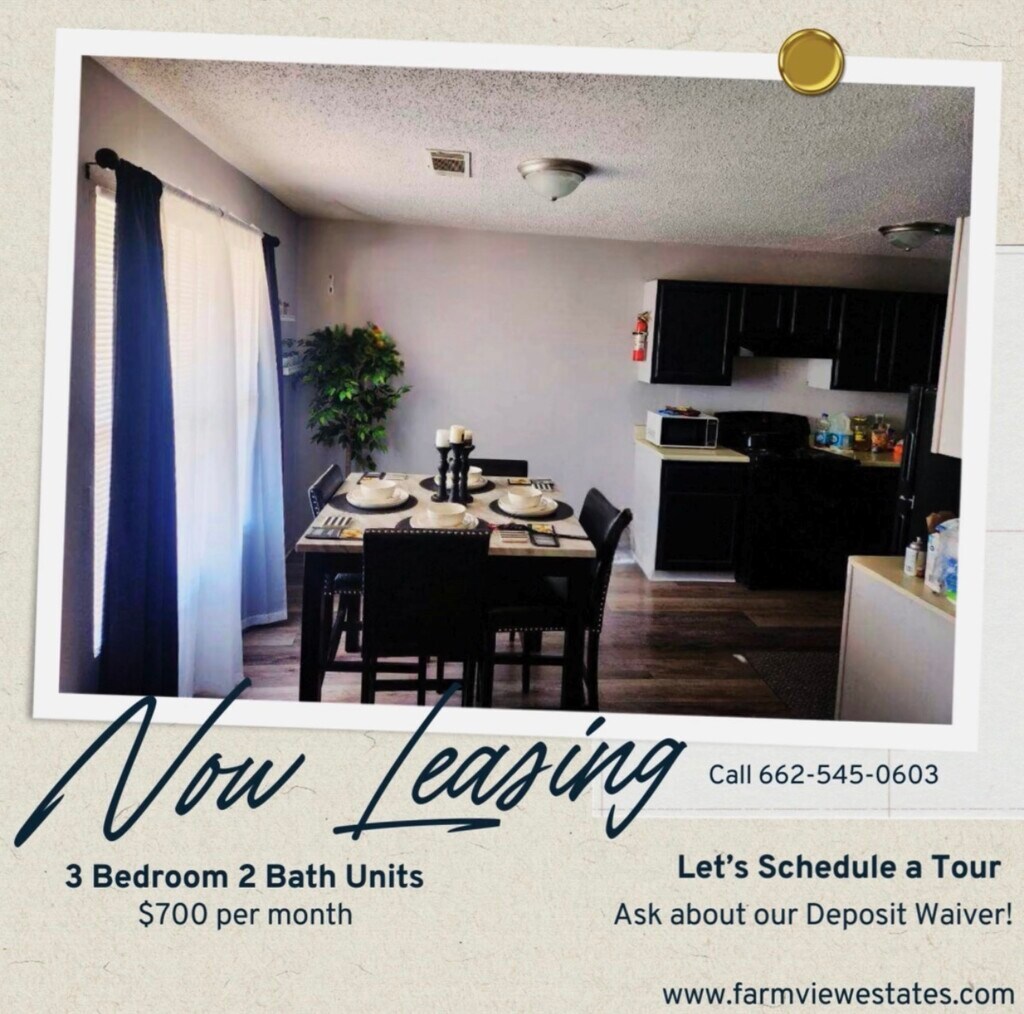 **Estamos bajo nueva administración!** Farmview Estates ofrece apartamentos de dos, tres, y cuatro habitaciones están diseñados con comodidad y la accesibilidad en mente. Las comodidades del complejo se centra en proporcionar un complejo tranquilo, e incluyen estacionamiento fuera de la calle, instalaciones de lavandería, cuidado del césped, y emergencia las 24 horas. Algunos apartamentos también tienen acceso a tu propio porche delantero. Ponte en contacto con nuestro personal de arrendamiento para programar un recorrido personalizado hoy mismo.