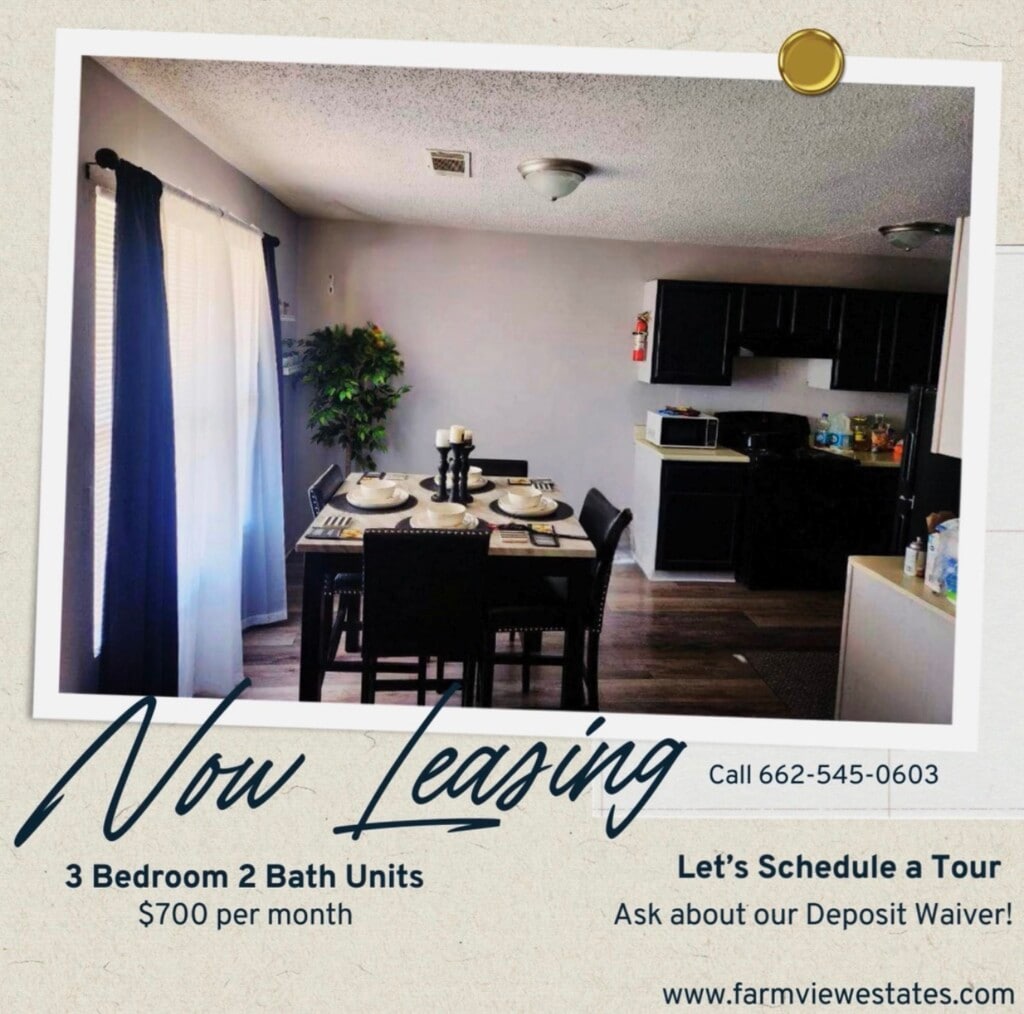 Farmview Estates ofrece apartamentos de 2 a 3 Dormitorios desde $650 con 900–1,261 pies cuadrados. Aquí está el precio actual y la disponibilidad:
