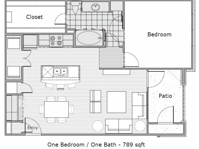 1 Dormitorio, 1 Baño, 789 pies²Disponible AhoraGalería del Modelo