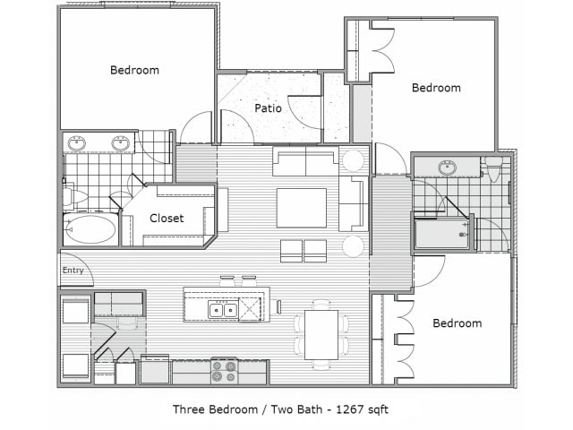 Modelo de apartamento: Big BendLlame para Precios3 Dormitorios, 2 Baños, 1267 sq ftNo Disponible![]()