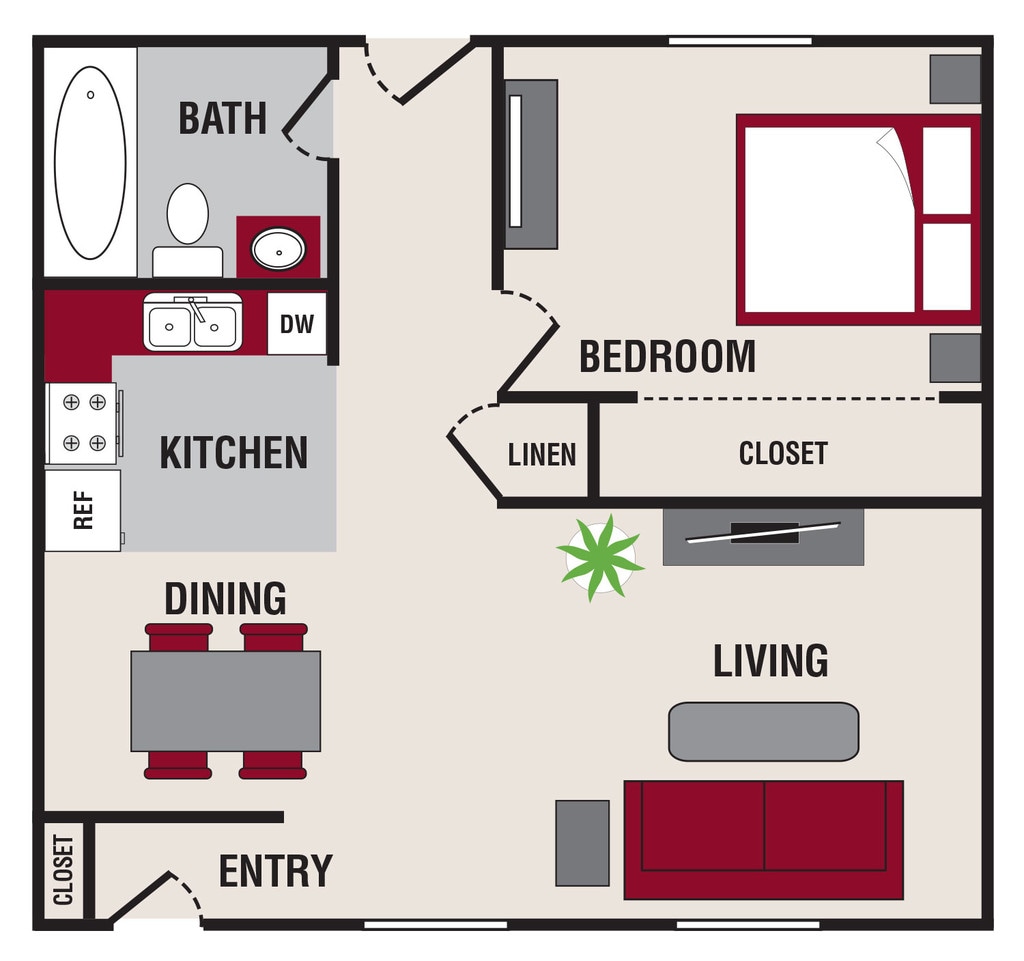 Modelo de apartamento: One Bedroom | One BathDesde $9001 Dormitorio, 1 Baño, 675 sq ftDisponible Ahora![]()