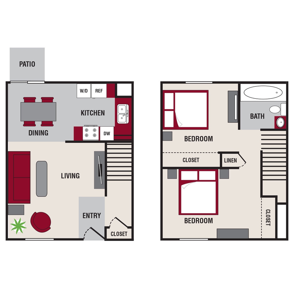 Modelo de apartamento: Two Bedroom | One BathDesde $1,1002 Dormitorios, 1 Baño, 875 sq ftDisponible Ahora![]()