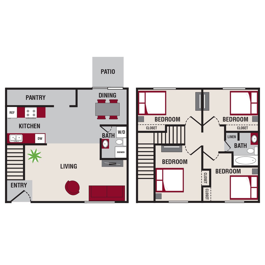 Modelo de apartamento: Four Bedroom | Two BathDesde $1,5004 Dormitorios, 2 Baños, 1256 sq ftNo Disponible![]()