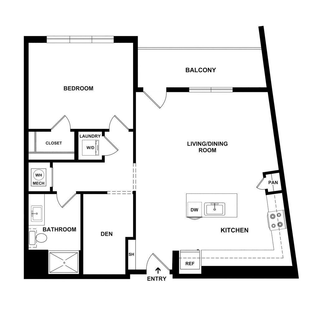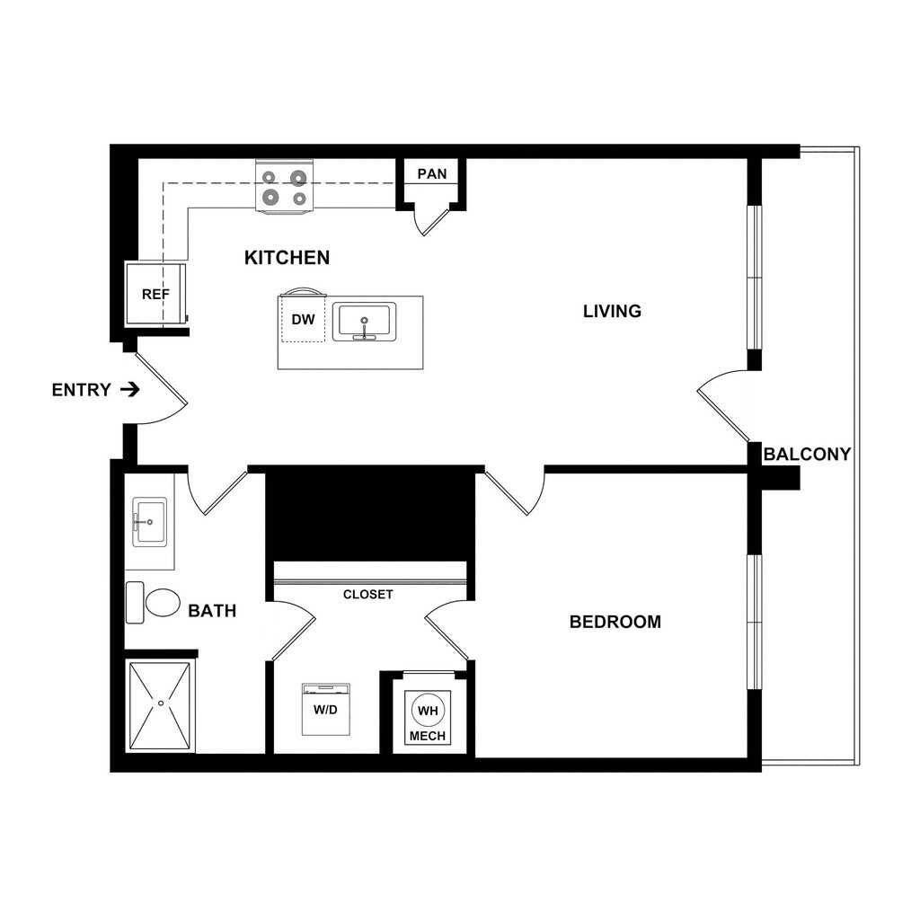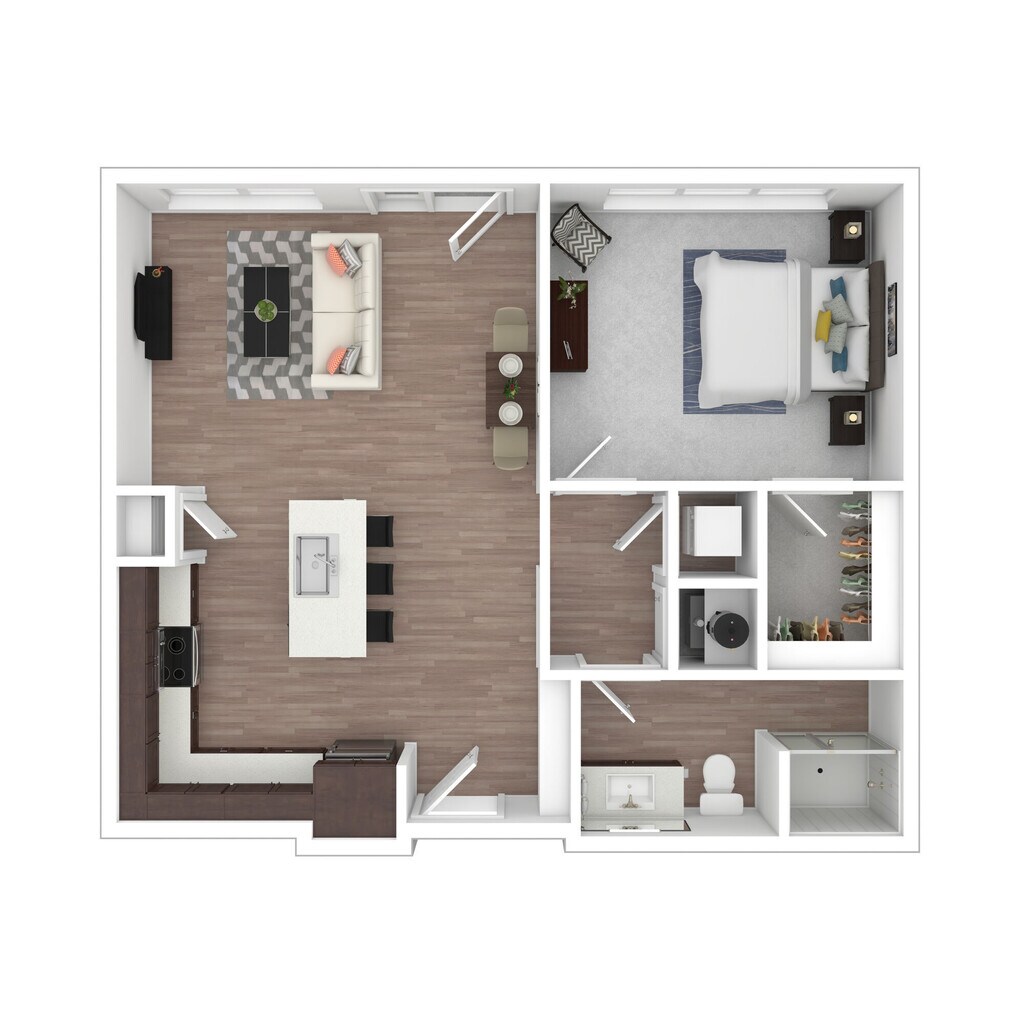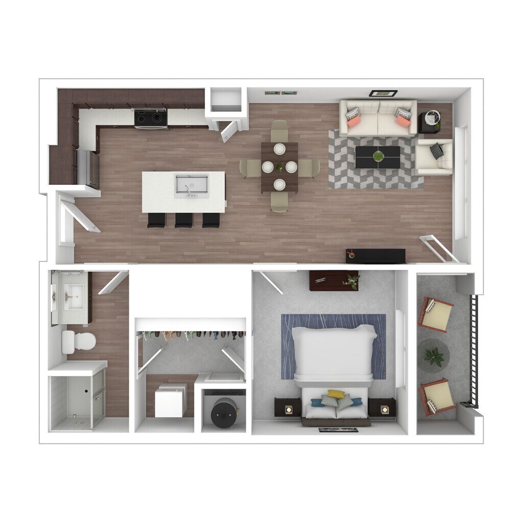 1 Dormitorio, 1 Baño, 859 pies²Disponible AhoraGalería del Modelo