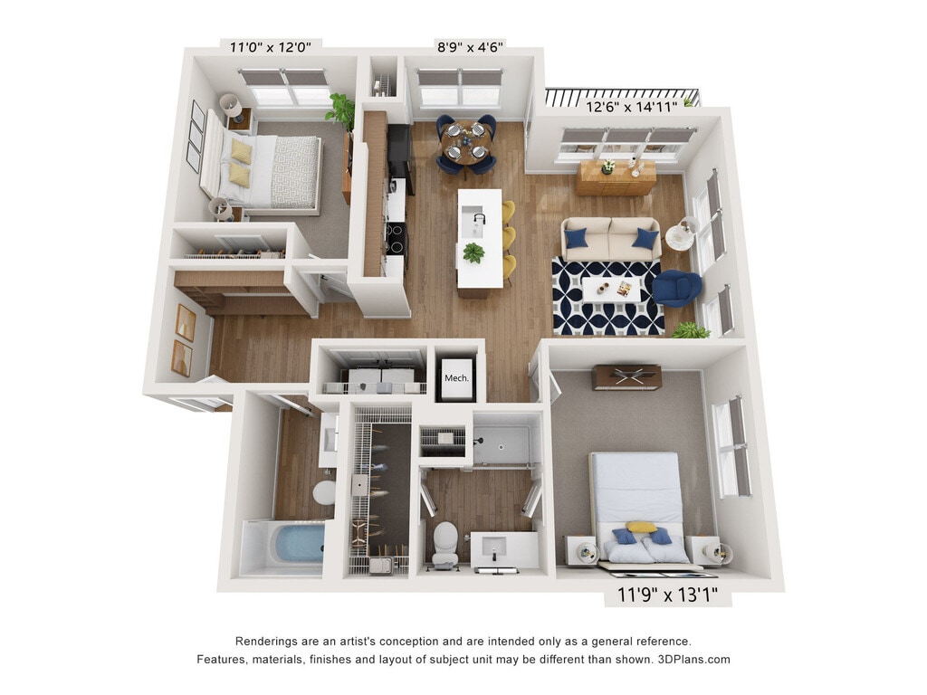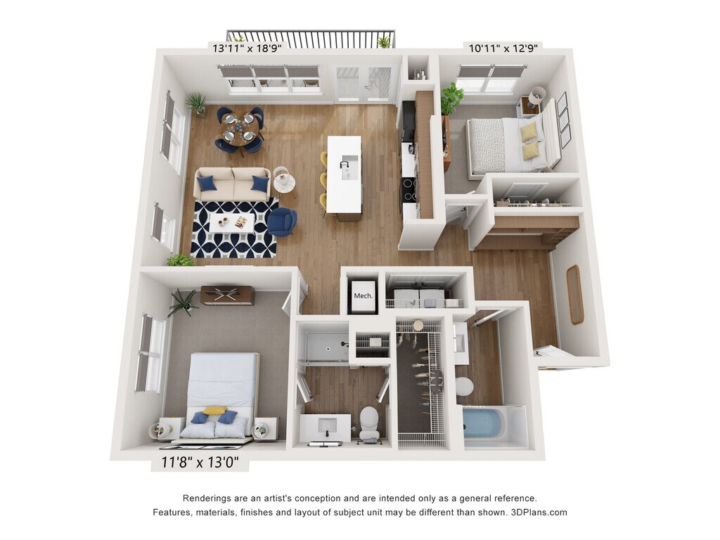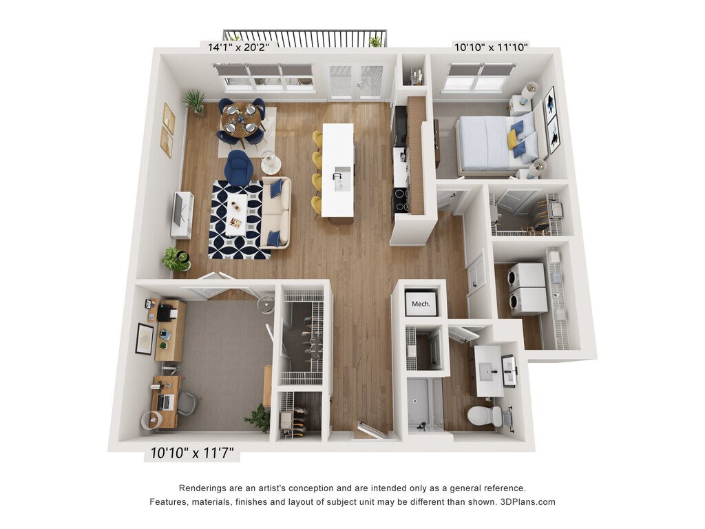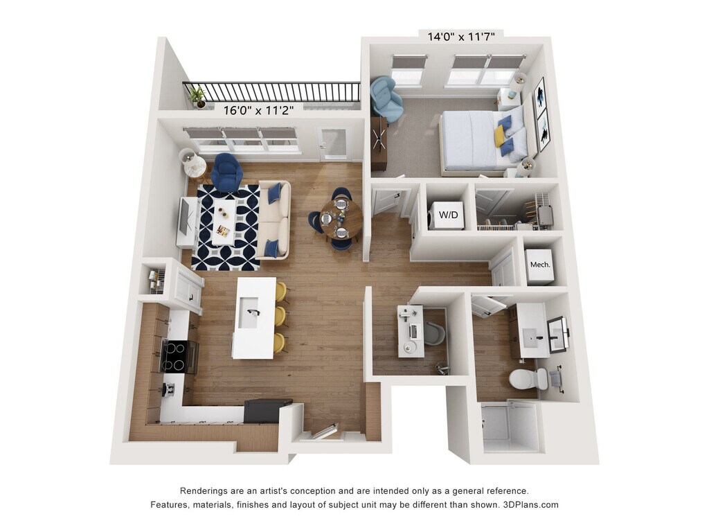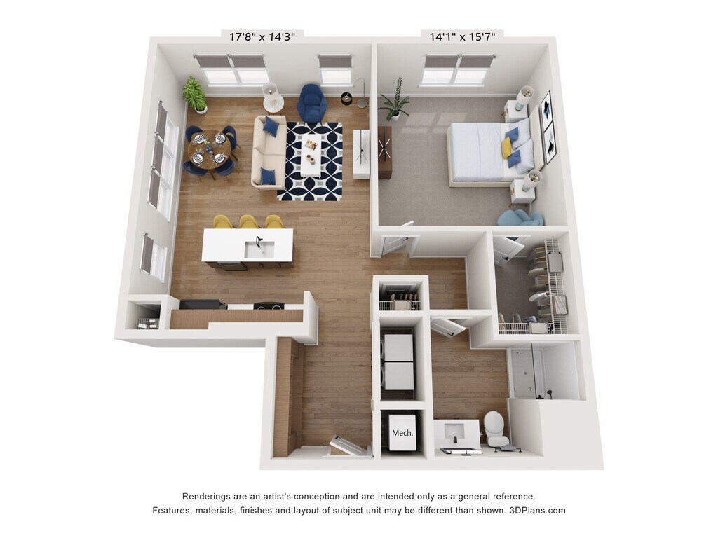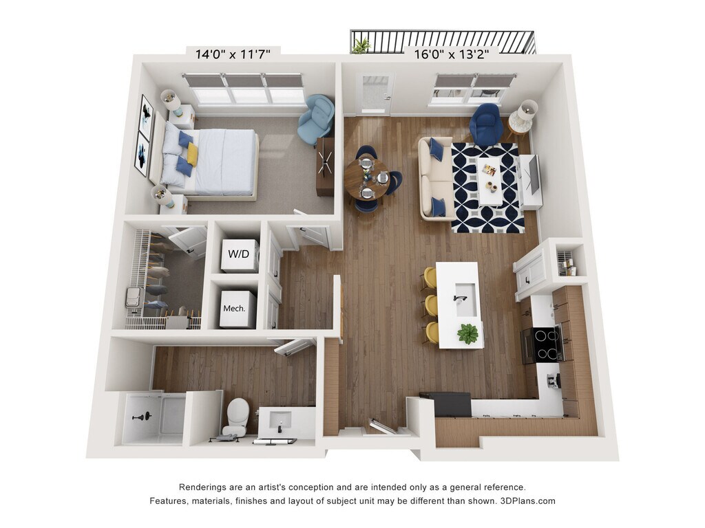1 Dormitorio, 1 Baño, 859 pies²Disponible AhoraGalería del Modelo