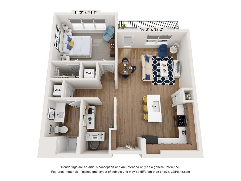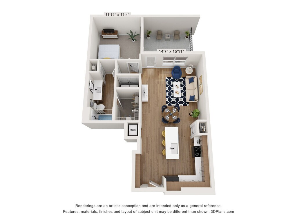 1 Dormitorio, 1 Baño, 1053 pies²Disponible AhoraGalería del Modelo