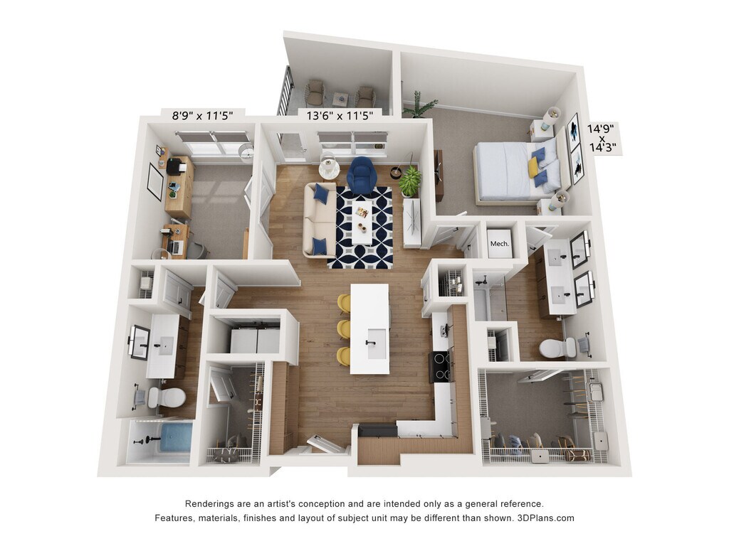 Modelo de apartamento: Cherry-A3B$1,4491 Dormitorio, 1 Baño, 852 sq ftDisponible Ahora![]()