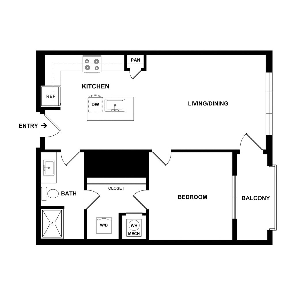 Estudio, 1 Baño, 603 pies²Disponible AhoraGalería del Modelo