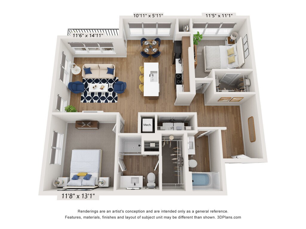 Modelo de apartamento: Maple-A16$1,4991 Dormitorio, 1 Baño, 1053 sq ftDisponible Ahora![]()