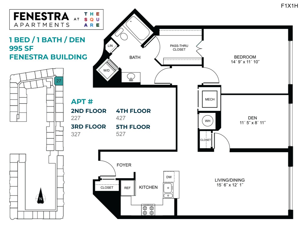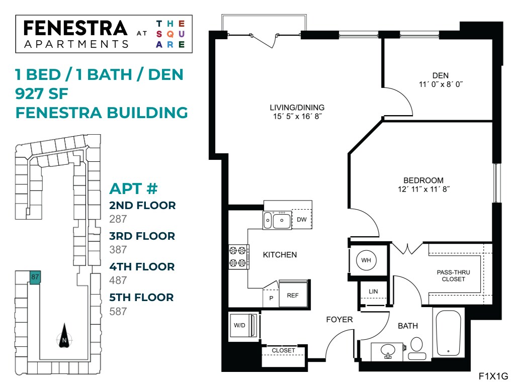 Fenestra - 1 Bed/1 Bath - Plano 4 Unidad de apartamento: 120 Gibbs-F287Modelo de apartamento: Fenestra - 1 Bed/1 BathDesde $2,3141 Dormitorio, 1 Baño, 927 sq ftDisponible AhoraLunette - 1 Bed/1 Bath w/ Den
