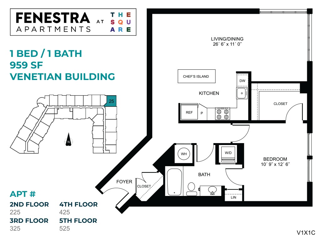Modelo de apartamento: Fenestra - 1 Bed/1 BathDesde $2,3141 Dormitorio, 1 Baño, 906-995 sq ftDisponible AhoraLos planos son representaciones artísticas. Todas las dimensiones son aproximadas. El producto y las especificaciones reales pueden variar en tamaño o detalle. No todas las características están disponibles en cada vivienda en alquiler. Por favor, consulta con un representante para obtener más detalles.
