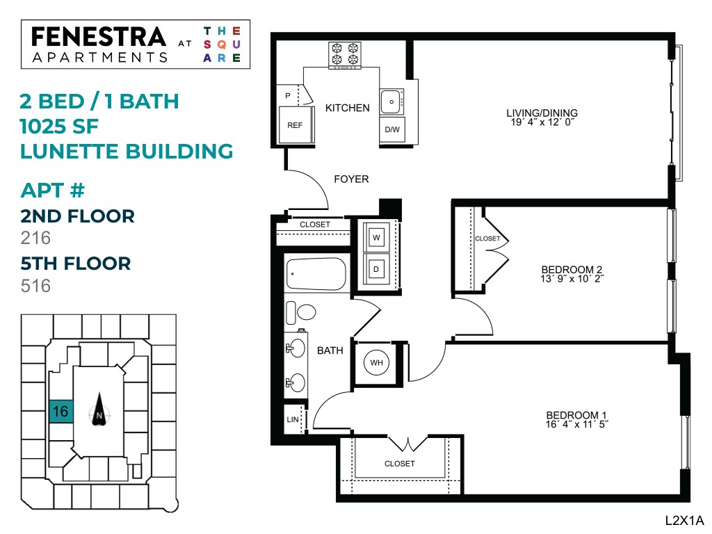 Fenestra - 1 Bed/1 Bath - Plano 2 Los planos son representaciones artísticas. Todas las dimensiones son aproximadas. El producto y las especificaciones reales pueden variar en tamaño o detalle. No todas las características están disponibles en cada vivienda en alquiler. Por favor, consulta con un representante para obtener más detalles.