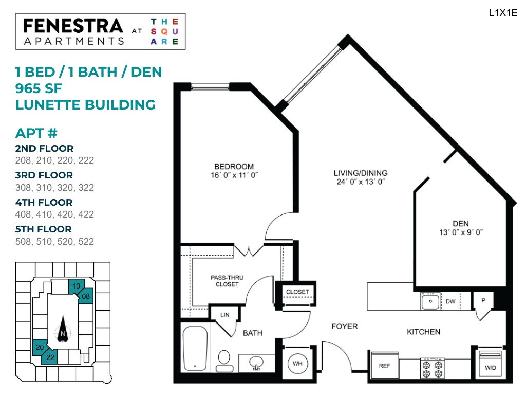 Lunette - 1 Bed/1 Bath w/ Den - Plano 1 Unidad de apartamento: 37 Maryland-L210Modelo de apartamento: Lunette - 1 Bed/1 Bath w/ DenDesde $2,3851 Dormitorio, 1 Baño, 965 sq ftDisponible AhoraFenestra - 1 Bed/1 Bath