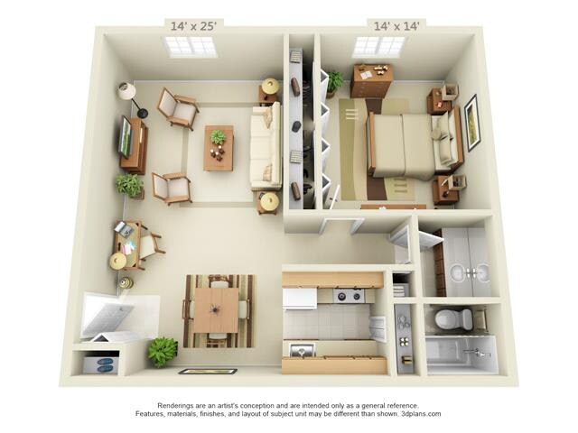 1 Dormitorio, 1 Baño, 680-860 pies²Disponible AhoraGalería del Modelo
