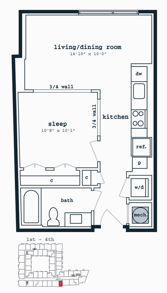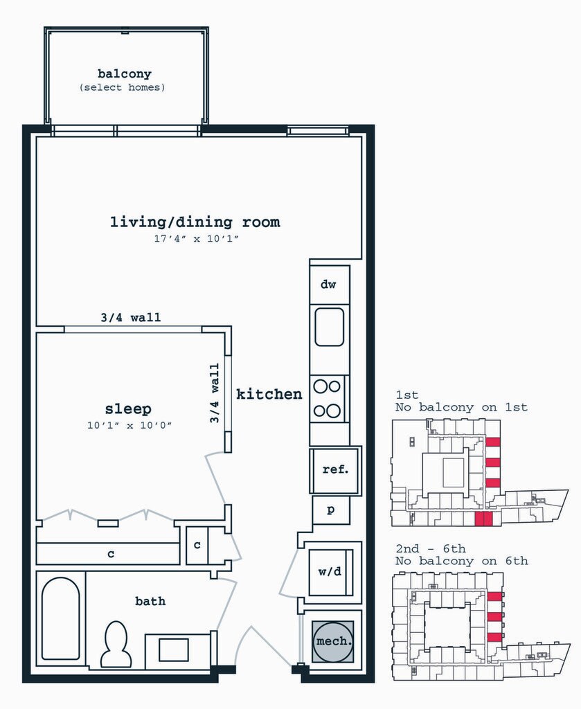 Estudio, 1 Baño, 529-547 pies²Disponible AhoraGalería del Modelo