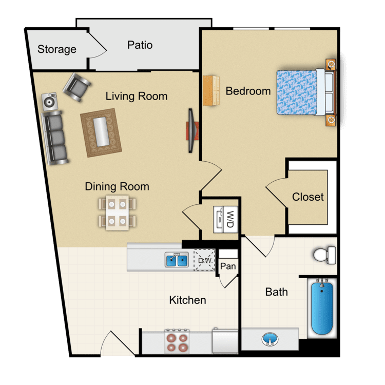 Modelo de apartamento: BDesde $2,329Estudio, 1 Baño, 481 sq ftDisponible Ahora![]()