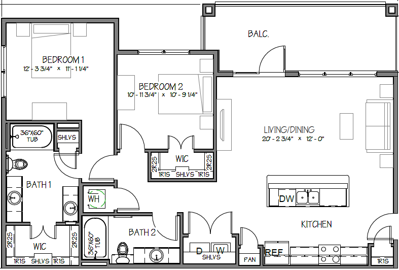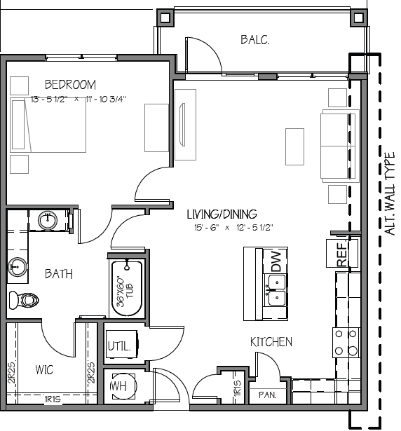 1 Dormitorio, 1 Baño, 730 pies²Disponible AhoraGalería del Modelo