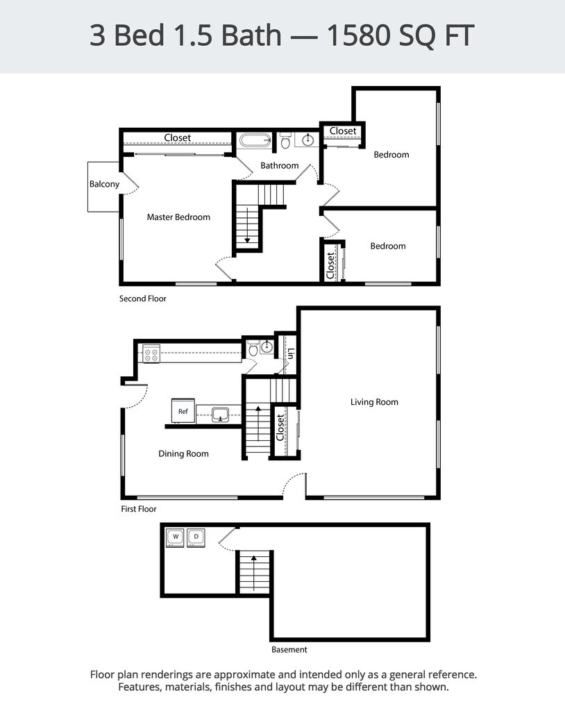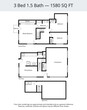 Modelo de apartamento: 3 Bed 1.5 Bath TownhomeLlame para Precios3 Dormitorios, 1.5 Baños, 1580 sq ftNo Disponible3 Bed 1.5 Bath Townhome - Plano 1