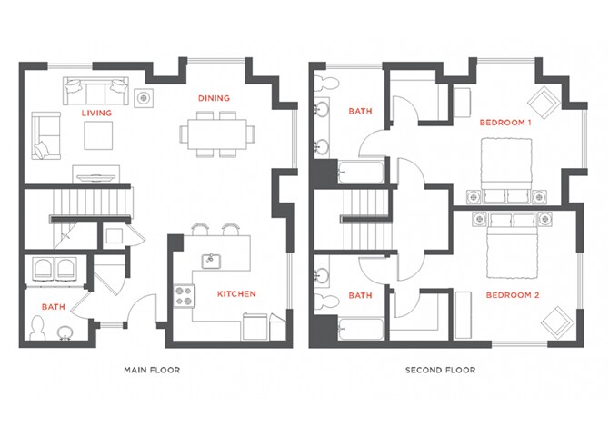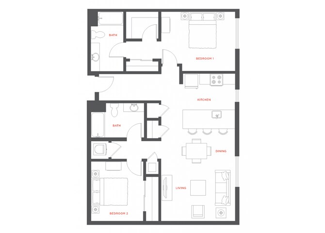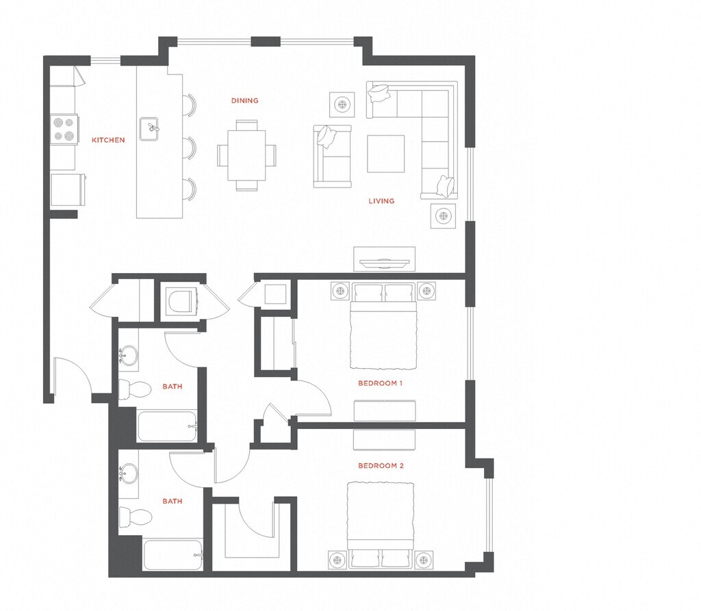 2 Dormitorios, 2 Baños, 1051 pies²Galería del Modelo