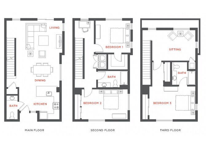 3 Dormitorios, 2 Baños, 1498 pies²Galería del Modelo