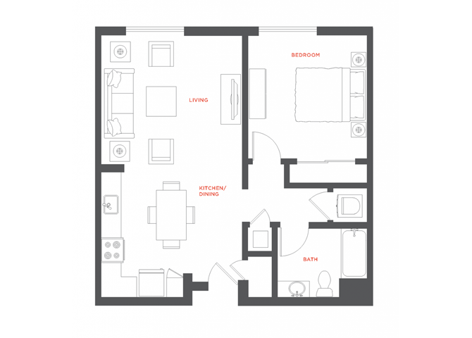 Estudio, 1 Baño, 580 pies²Galería del Modelo