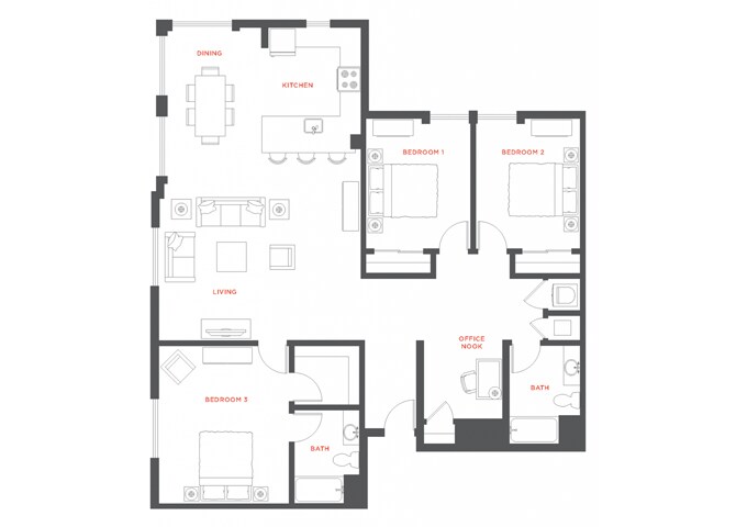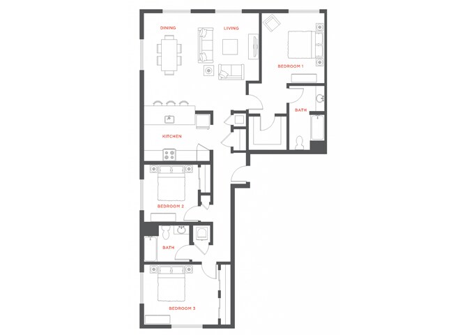 Modelo de apartamento: A33 Dormitorios, 2 Baños, 1360 sq ftNo Disponible![]()