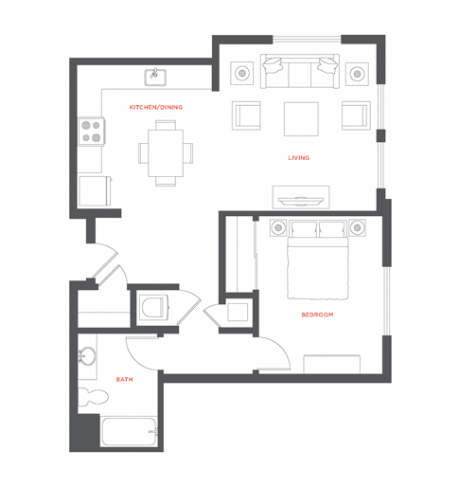 1 Dormitorio, 1 Baño, 751 pies²Galería del Modelo