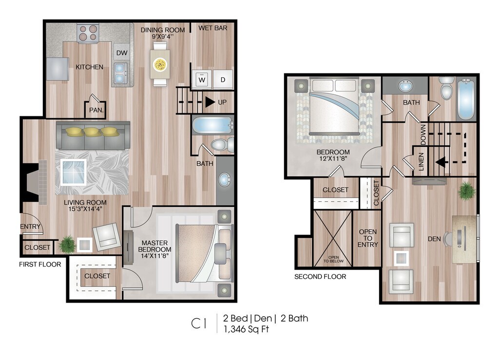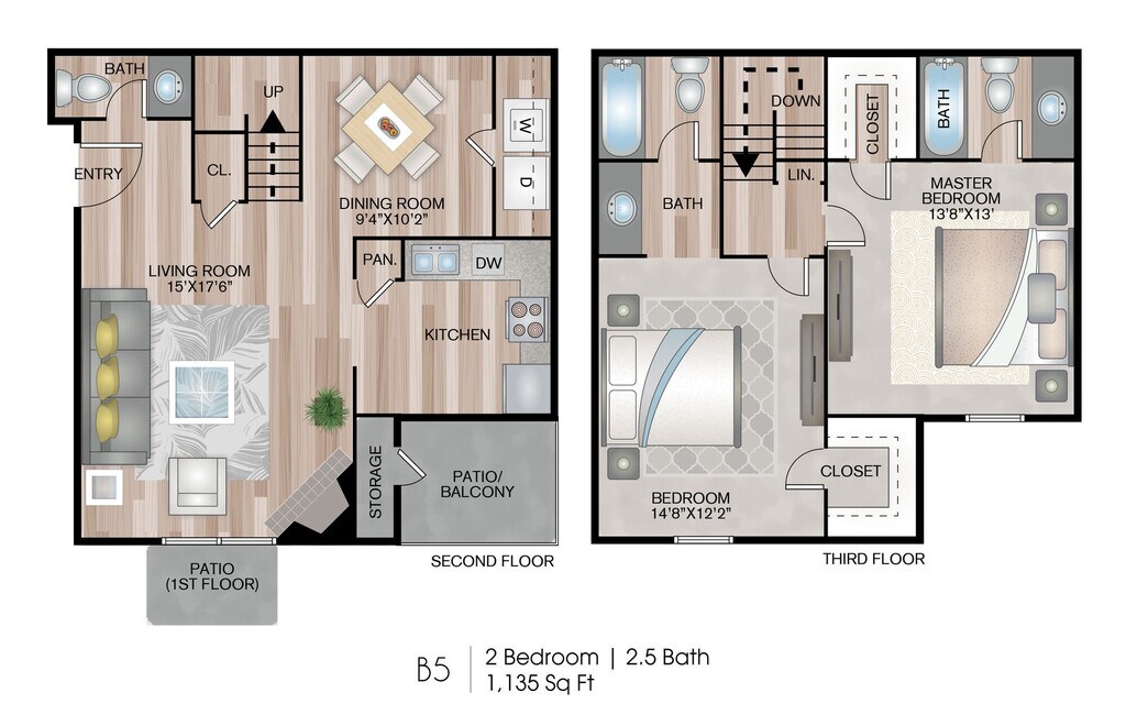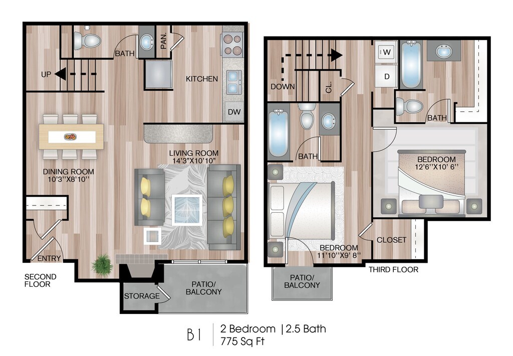 Modelo de apartamento: B1Desde $1,1992 Dormitorios, 2.5 Baños, 775 sq ftDisponible Ahora![]()