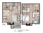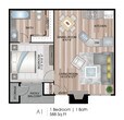 Modelo de apartamento: A1Desde $1,2061 Dormitorio, 1 Baño, 588 sq ftNo DisponibleA1 - Plano 1 2 Dormitorios