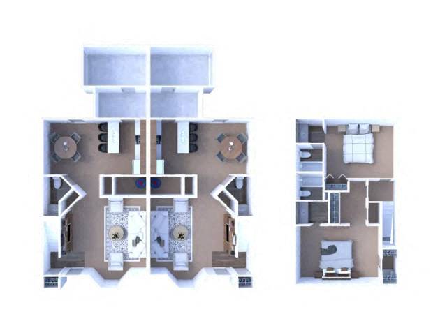 Modelo de apartamento: TWO BEDROOMDesde $1,5992 Dormitorios, 2.5 Baños, 1300 sq ftDisponible AhoraTWO BEDROOM - Plano 1