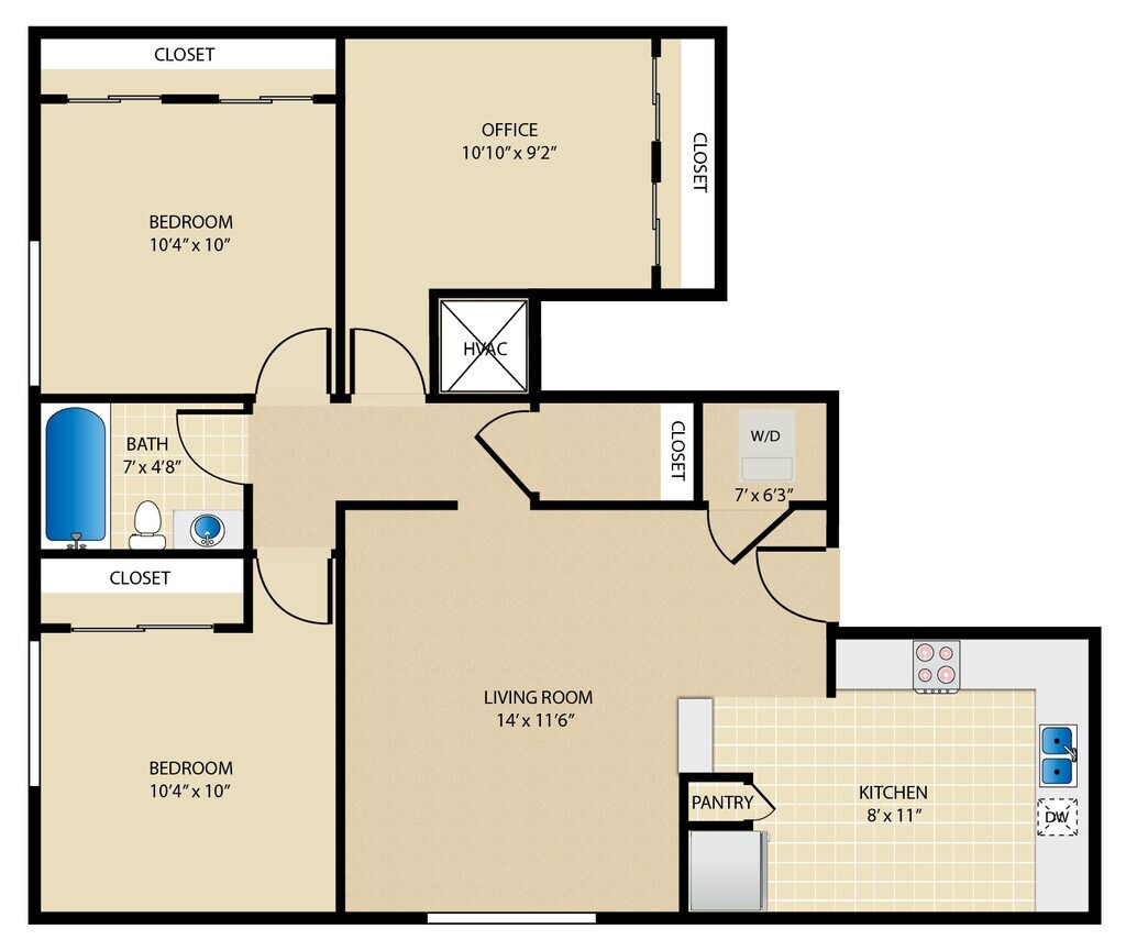 2 Dormitorios, 1 Baño, 858 pies²Disponible AhoraGalería del Modelo