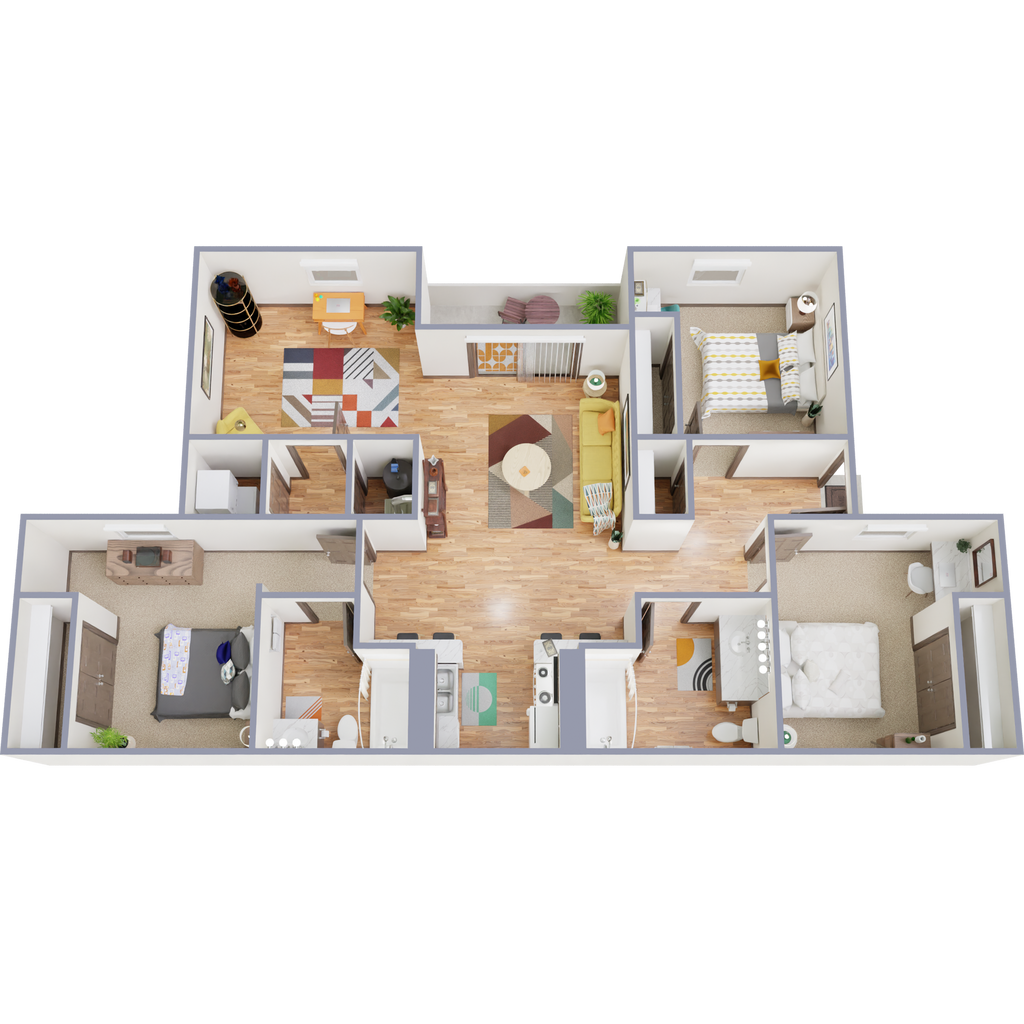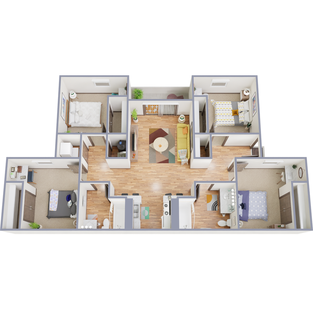 Modelo de apartamento: D1 - 4x2Llame para Precios4 Dormitorios, 2 Baños, 1092 sq ftNo DisponibleLos planos de la planta son una interpretación artística. Todas las dimensiones son aproximadas. Los tamaños o el detalle del producto real y sus especificaciones pueden variar. No todas las características están disponibles en todos los hogares para rentar. Los precios y la disponibilidad están sujetos a cambios. El alquiler que se muestra es mensual. Se pueden aplicar ciertos cargos, por ejemplo, entrega de paquetes, recolección de basura, agua, servicios, etc. Depositos varian. Consulta a un representante para conocer detalles.